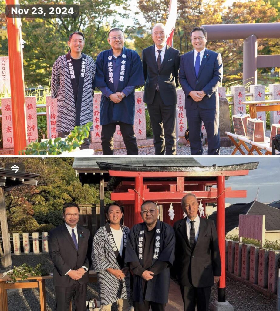 2025年11月23日【本牧神社】新嘗祭・宇氣稲荷社例祭 勤労感謝の日の本日11月23日、本牧神社にて新嘗祭・宇氣稲荷社例祭が斎行されました。 下段が今年の写真です。本牧和田祭礼委員会のお参りメンバーで記念撮影しました。
